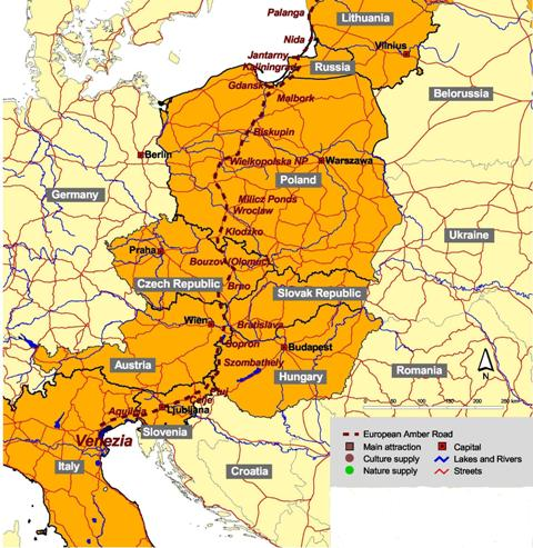 Šis kelias iš Jutlandijos pusiasalio ėjo Elbės upe iki Zalės žiočių, toliau Zalės upe ir sausuma per Bohemiją iki Dunojaus, Dunojumi iki Inos žiočių, Inos upe ir Brenerio perėja į šiaurės Italiją.