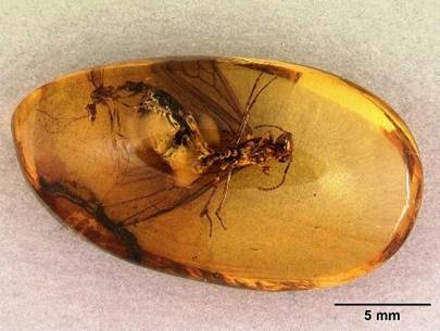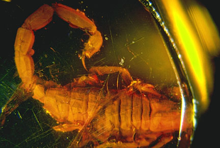 Iš skorpionų (Scorpionida) būrio gintare aptinkama Tityus gentis, dabar būdinga Šiaurės ir Centrinei Amerikai.