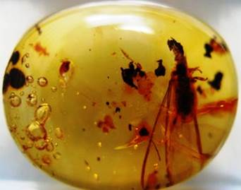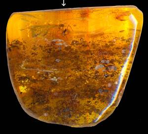 Gana dažnai gintare pasitaiko įvairių dumblių, kurie aptinkami medienos ląstelienoje arba švariame gintare. Daugiausia tai žalsvadumbliai ir melsvadumbliai. Cistų ir smulkių nariuotakojų kiaušinių gintare rasta nedaug.