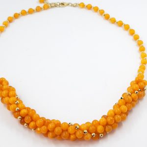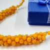 Puošnus vėrinys iš austi gintaro kamuoliukų ir sidabrinių (18K auksu padengtų) kamuoliukų