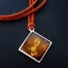 Gintaro pakabukas ant odinės virvelės