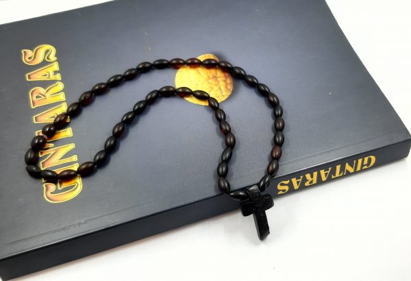 Gintaro vyriški karoliai su križiu
