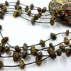 Žalios spalvos Baltijos gintaro karoliai ant odos